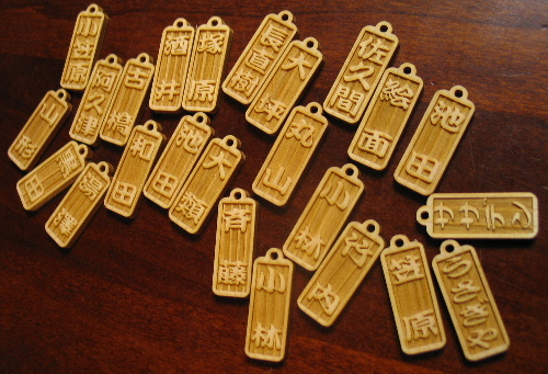 ・新商品 模様つき木札ストラップ 杉材使用 2010.8.7 ※オリジナル模様がたくさん |