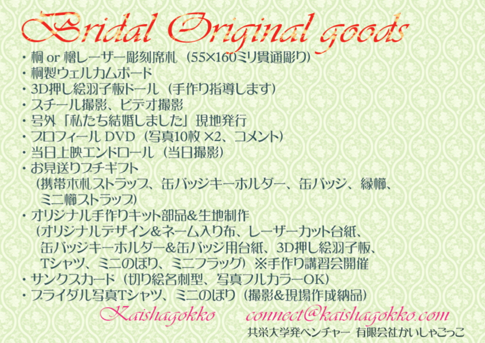 | ・ブライダルフォトグラファーとノベルティグッズ企画制作企画開始 2011.6.1 |