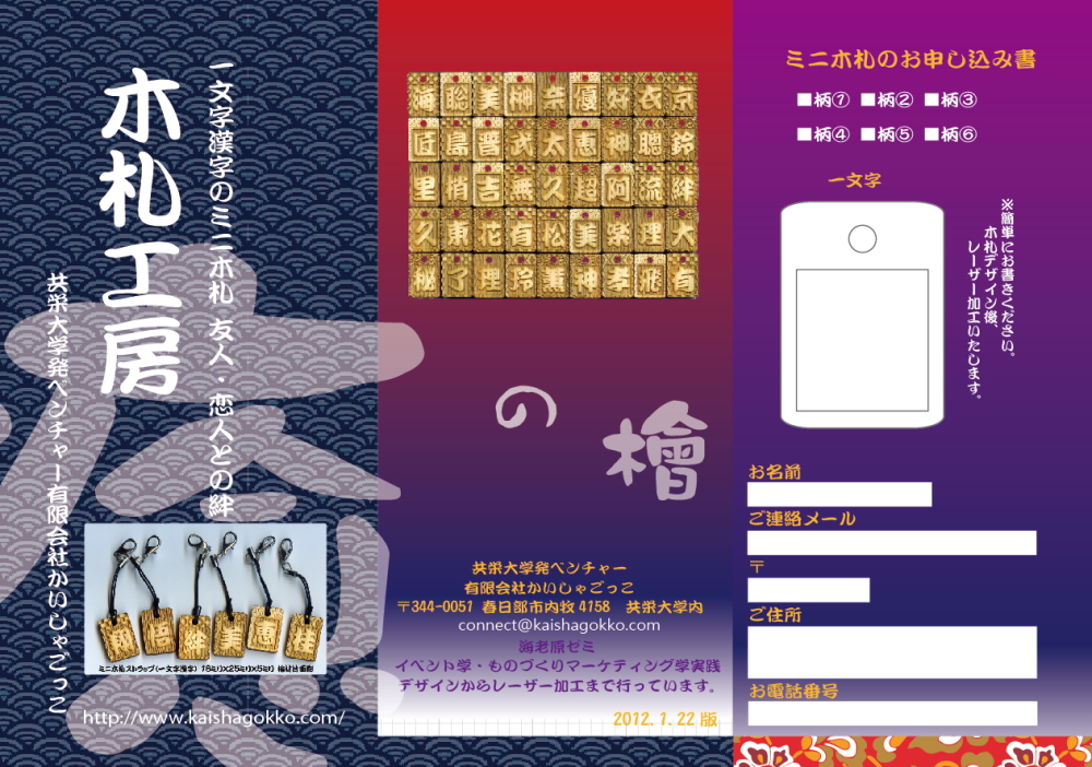 ・かいしゃごっこ商品案内チラシ「四字熟語座右の銘木札工房」配布開始