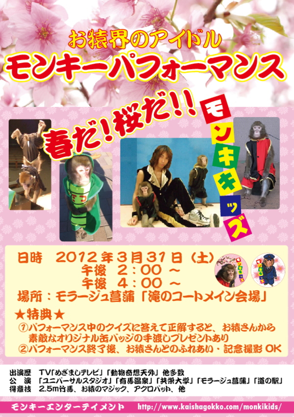 | ・モラージュ菖蒲の滝のコートイベントステージのモンキキッズのポスターを担当しました