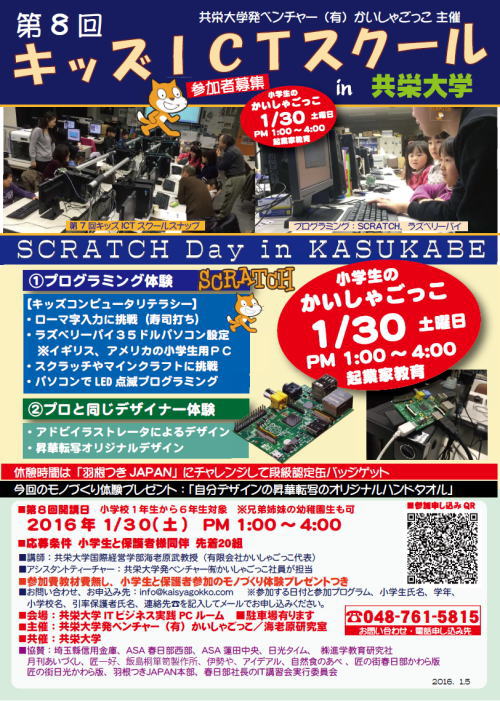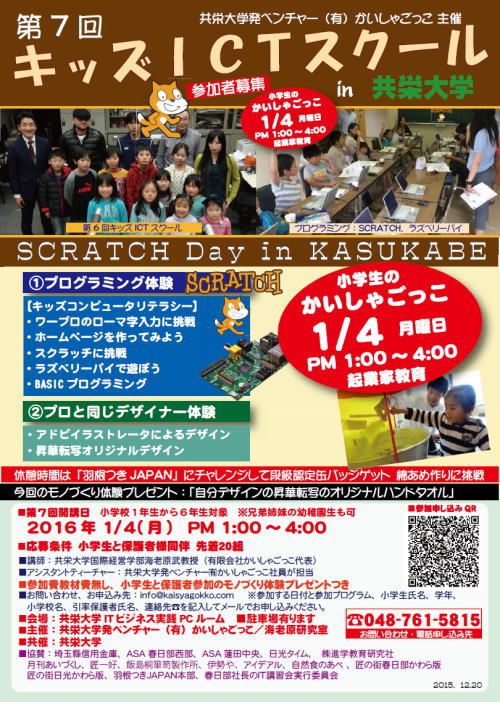 ・第7回キッズICTスクール2016.1.4 13:00〜16:00 協賛:埼玉縣信用金庫、その他多数企業様