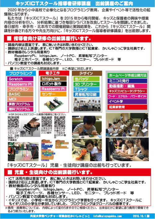・「キッズICTスクール指導者研修」出前講座始めました。 |